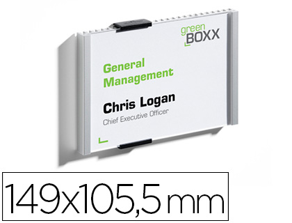 El identificador portanombre DURABLE es la solución perfecta para facilitar la identificación personal en entornos profesionales. Diseñado con un elegante marco negro y una ventana de PVC antiarañazos, este accesorio combina funcionalidad y estilo, asegurando una apariencia impecable incluso después de un uso intensivo.