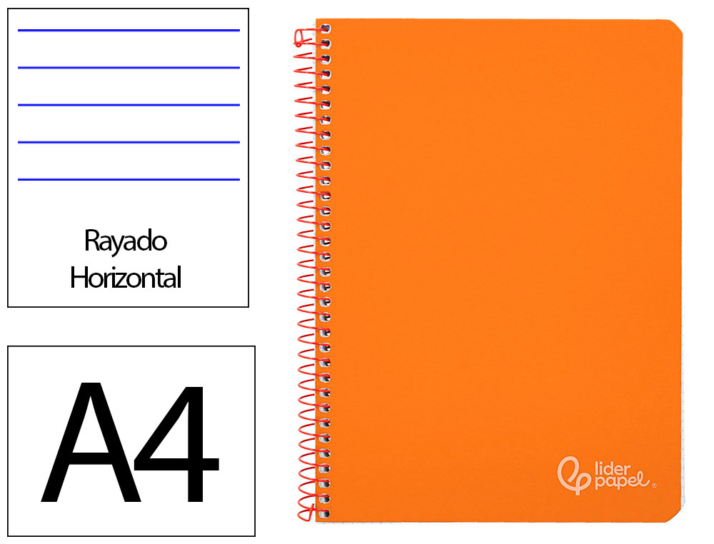 Cuaderno espiral liderpapel a4 witty tapa dura 80h 90gr rayado horizontal con margen color rojo