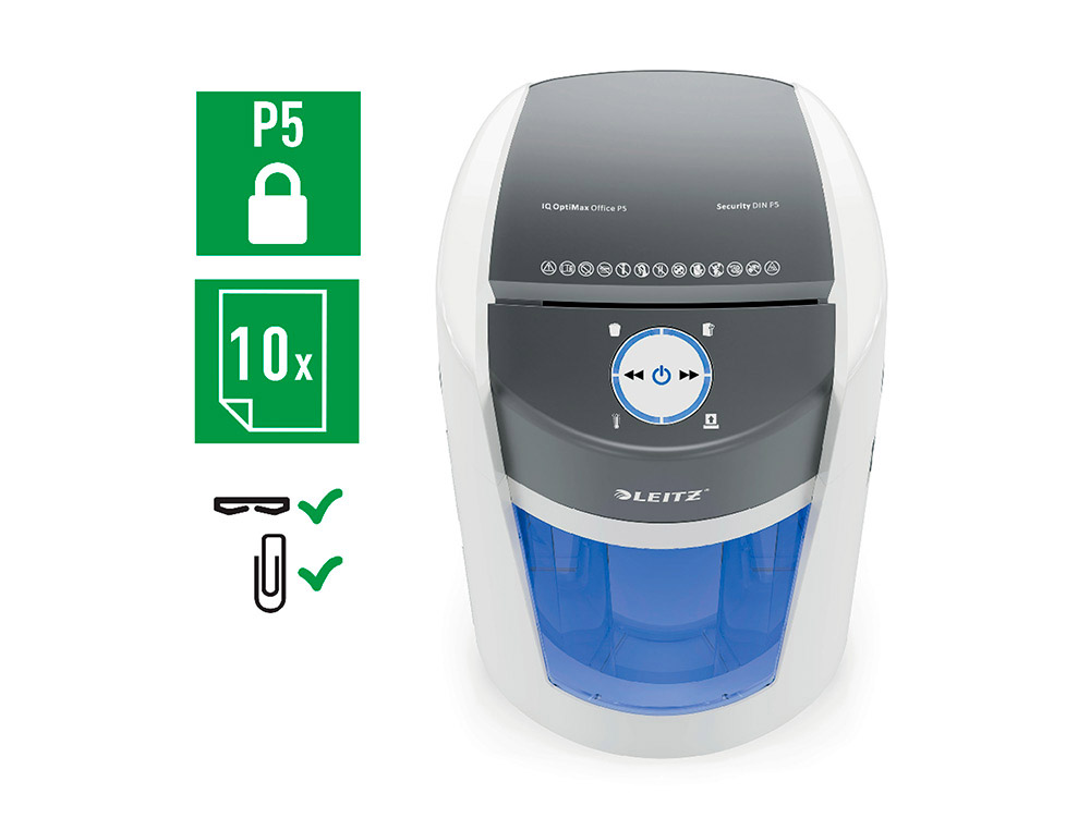 Destructora de documentos leitz optimax 225 home office p5 capacidad corte 6 hojas destruye grapas clips 15